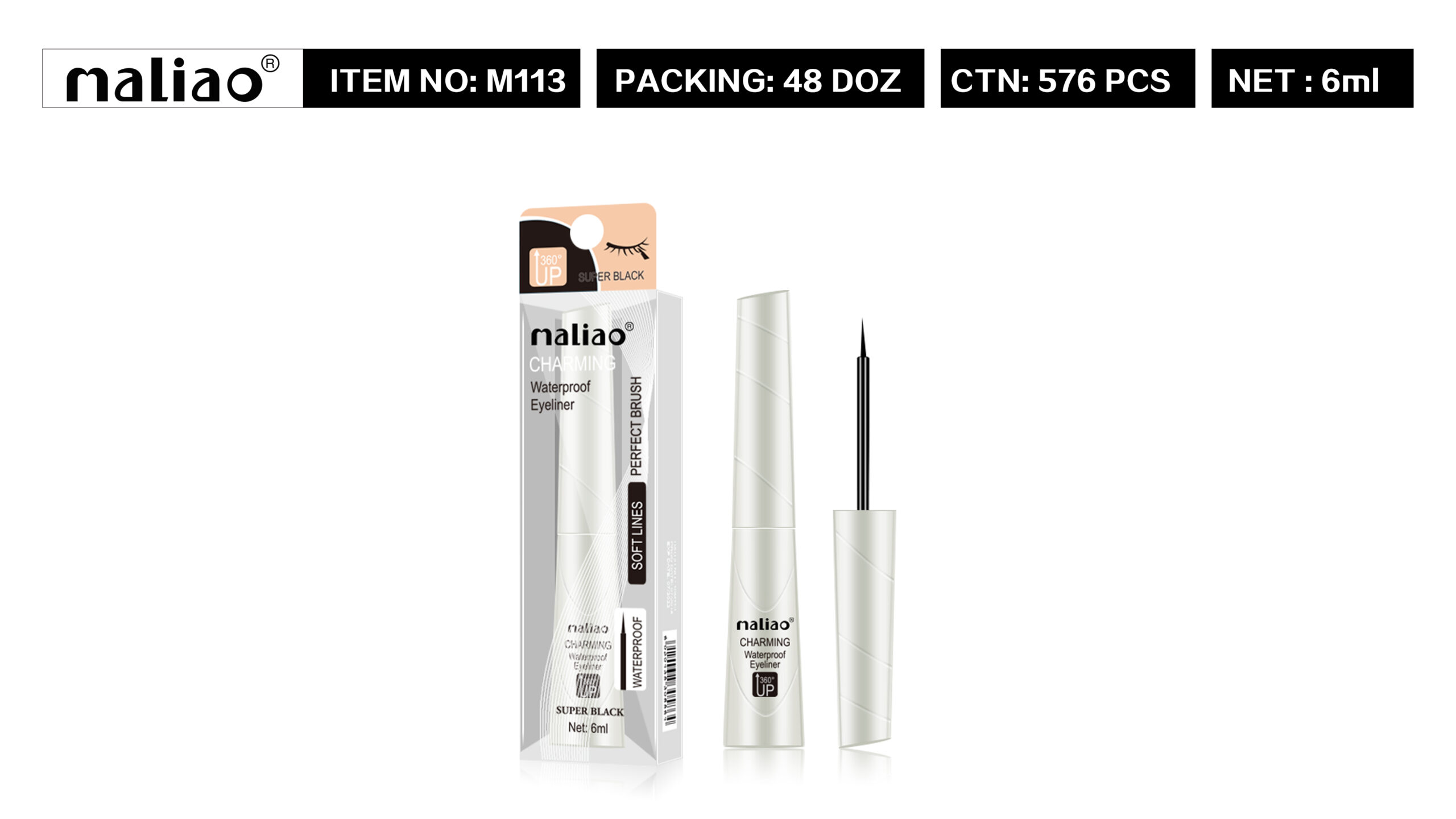 + Shipping FeeMALIAO Charming Liquid Waterproof Super black Eyeliner 6 ml (SUPER BLACK) 6 ml (black)